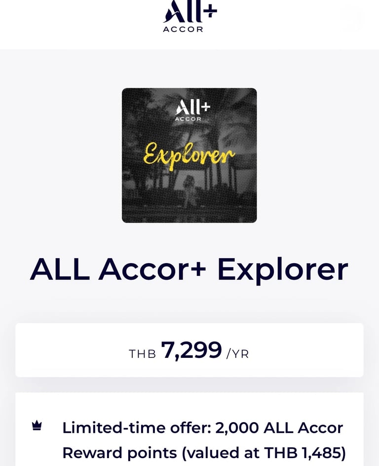 สมัคร ALL Accor+ Explorer ราคาเต็ม 7,299 บาท รับฟรี 2,000 คะแนน