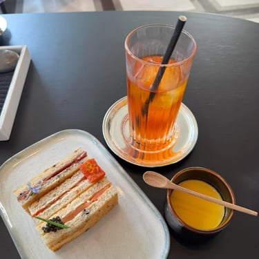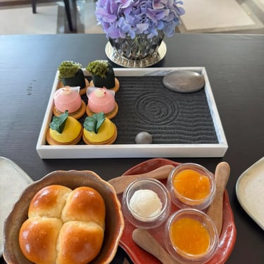 แรงบันดาลใจจากสวนหินเซนญี่ปุ่น เน้นความเรียบง่าย สงบ และการจัดวางเสมือนงานศิลป์ อาหารทุกจานออกแบบให้สวยเหมือนจัดสวนลงบนจาน เจ๋งอะ ไม่มีเสิร์ฟเป็นกระเช้าเหมือน Afternoon Tea ที่อื่น แต่จัดวางบนถาดเล็กๆ คล้ายสวนญี่ปุ่น ขอชื่นชมคนออกแบบ ทำดีถูกใจมากๆ