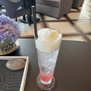 • ค็อกเทลซิกเนเจอร์ Cherry Blossom Cloud (Roku Gin, cherry blossom, meringue cloud, ginger ale, citrus) 300++