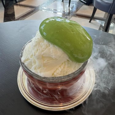 • Kakigori – น้ำแข็งไสญี่ปุ่นซ่อน Strawberry Compote ด้านใน ท็อปด้วย Matcha Foam (จานนี้คือ MVP ของผม อร่อยมากกก)