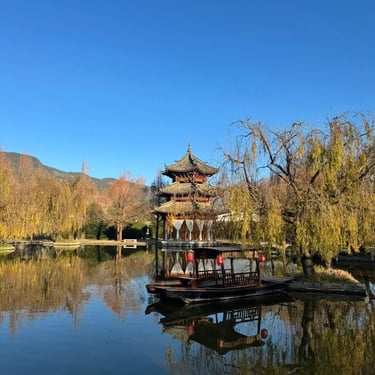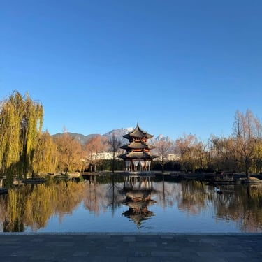 ข้อดีคือสงบกว่าฝั่ง Lijiang Old Town เยอะมาก รถไม่ติด คนไม่วุ่นวาย และวิวดีกว่าชัดเจน
