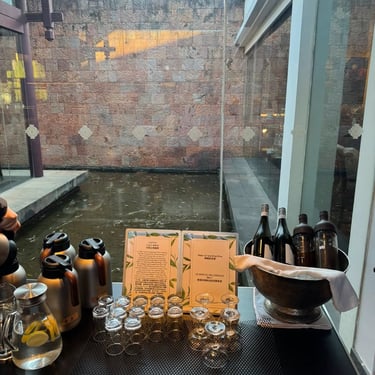 มีเครื่องดื่มและค็อกเทลให้บริการ แต่บรรยากาศจะมืดๆ เงียบๆ ไม่ค่อยน่านั่งเท่าไหร่ ด้านนอกบรรยากาศดีกว่าเยอะ