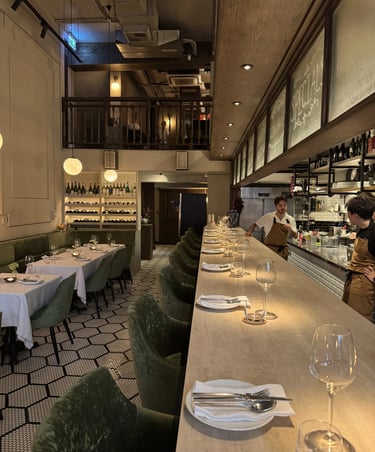 ร้านตกแต่งในโทนอบอุ่น เรียบหรูแต่ไม่ทางการเกินไป เหมาะกับทั้งดินเนอร์คู่รักหรือมากับกลุ่มเพื่อนสายกินจริงจัง