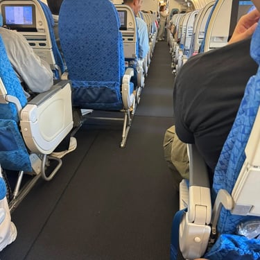 และบังเอิญสุดๆ ที่ผม “ลืมเลือกที่นั่ง” ตอนเช็คอิน แล้วระบบสุ่มให้ไปที่แถว 72 — ตอนแรกคิดว่าเซ็งแน่ นั่งหลังเครื่องกว่าจะได้ออก