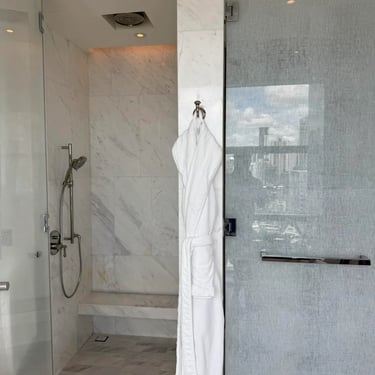 • ห้องน้ำหินอ่อนกว้างขวาง อ่างอาบน้ำติดหน้าต่างชมวิวสกายไลน์
