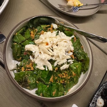 • ใบเหลียงคั่วห่อหมกแห้งหน้าปู (285 บาท) – เมนูแปลกน่าสนใจ กลิ่นใบเหลียงหอมดี