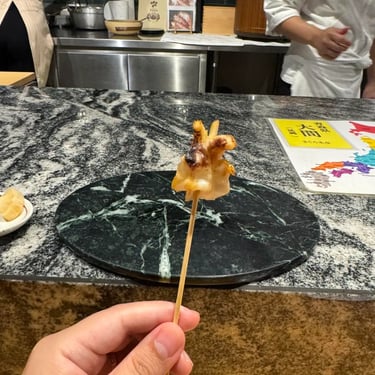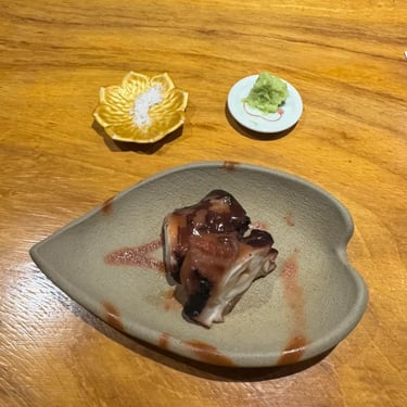 • Sakura Tako – หนวดปลาหมึกต้มโชยุและมิริน เนื้อนุ่มแต่เชฟให้กินคู่ดอกเกลือ กลายเป็นเค็มเกิน ควรไม่ต้องจิ้มเกลือแล้ว